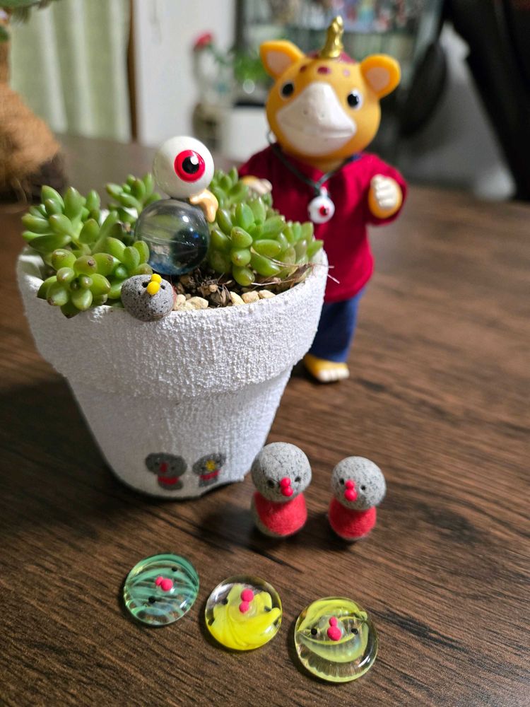 多肉ちゃんはスカスカですが、鉢やピータンが可愛いから良く見えますね🤭