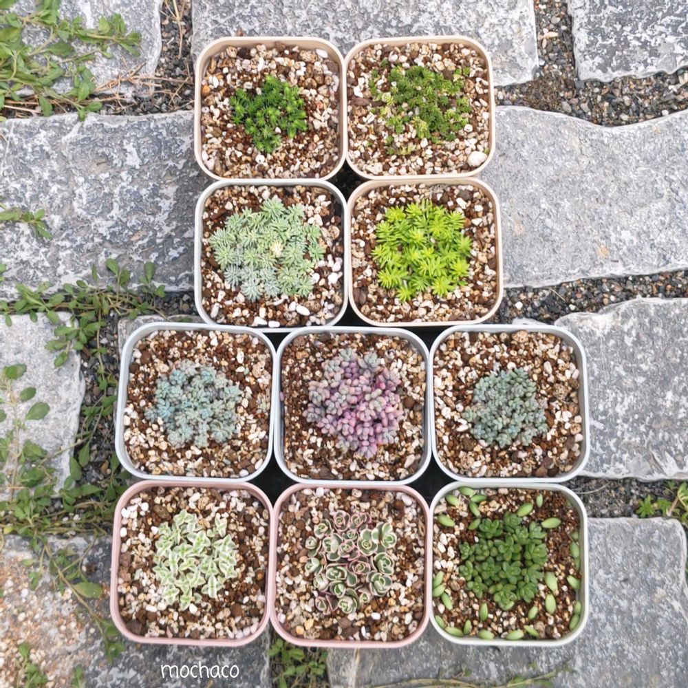 ポツポツに植えると水の蒸発が早くて水やりしっかりやらないとセダムはなくなっちゃうらしいよ🤔集めて植えた方が早くこんもりするのかな☺️maronchanさんもやってみてね😉