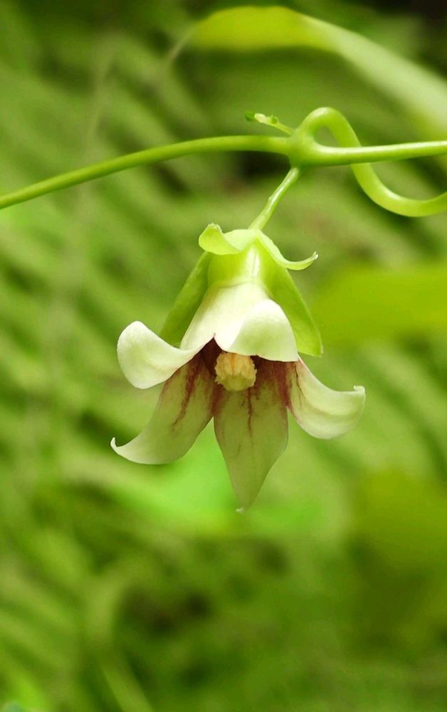 ツルギキョウは山地にやや稀に咲く希少種でツル性の多年草ですが、高尾山には何ヶ所かに咲いています。