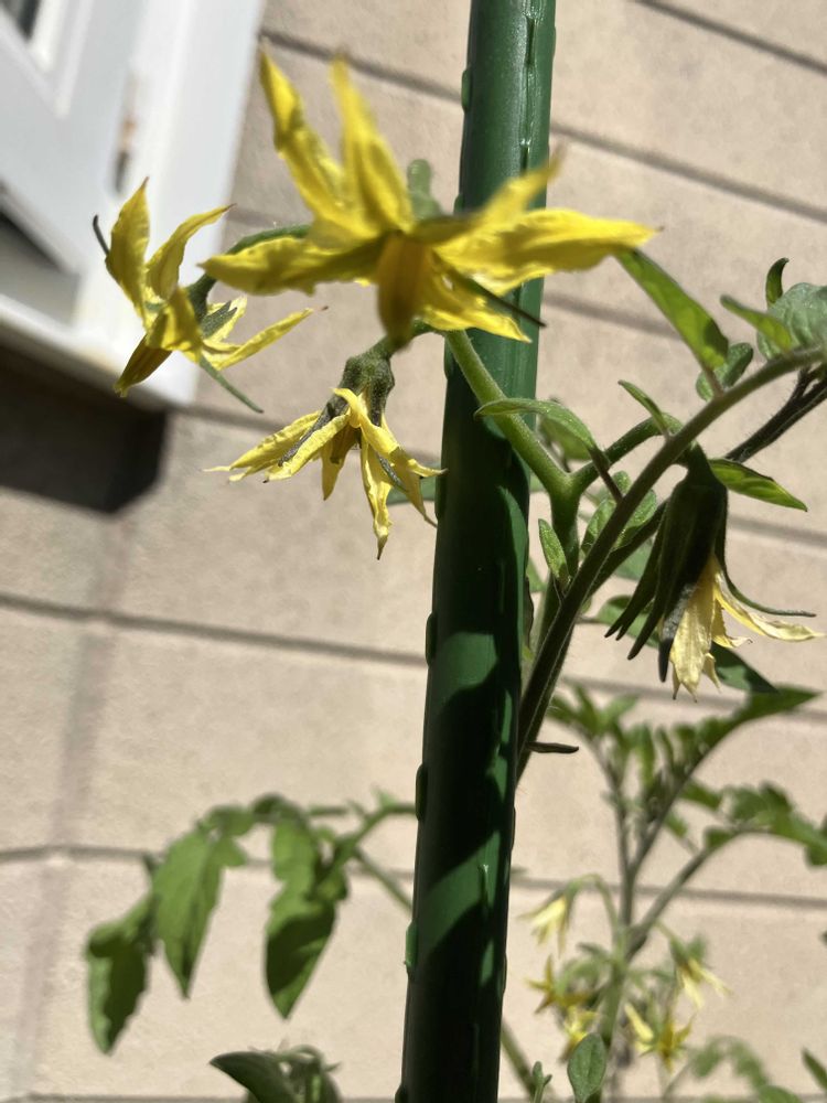 トマトは花が咲いて、実になるのですが中々赤かくならなくなりました。