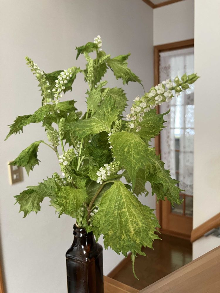 花が咲いてる青紫蘇を飾ったらとても良い香り😌