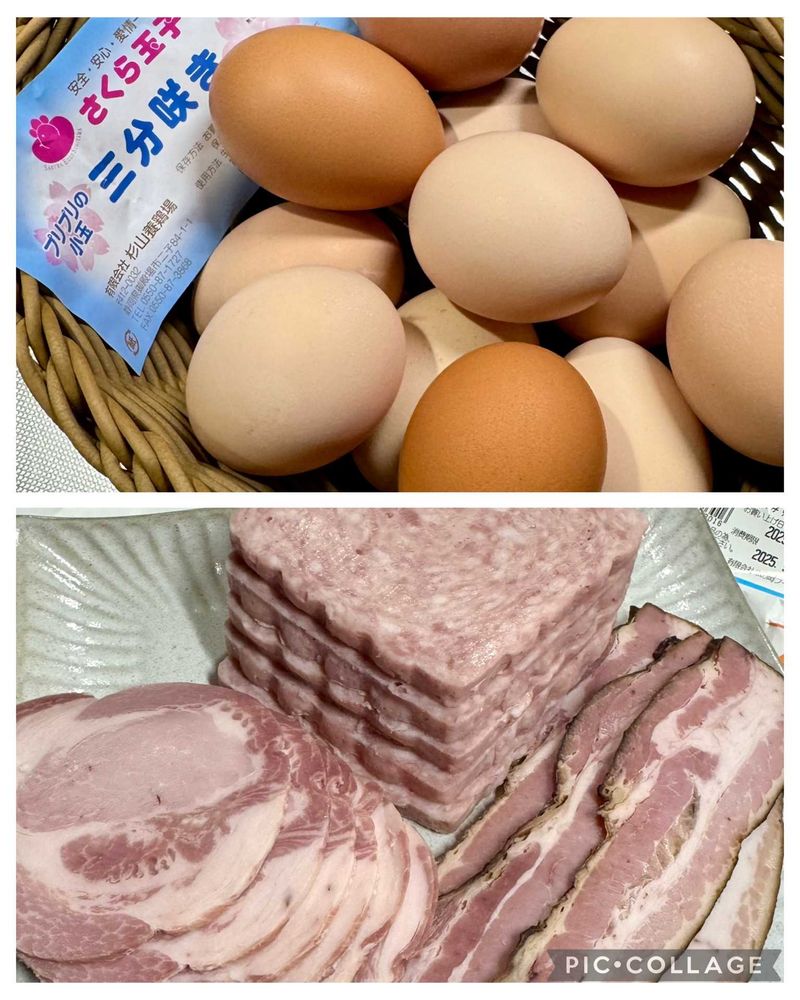 家の夫も会社員時代からの知人とよく行く卵の農家さん、知人からボローニャハムをおすそ分けで持ち帰った