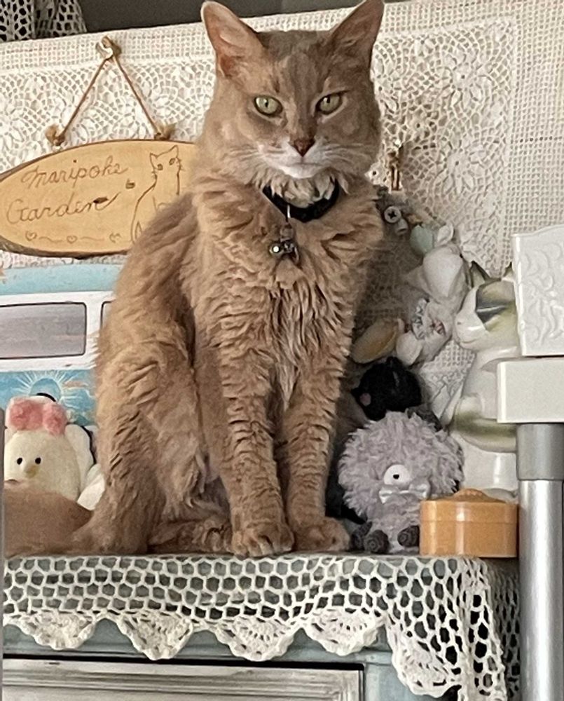 ファ−ンは時々構ってちゃん発動すると悪い顔して私をジーッと見つめ飾り物を1つだけ落とそうとします😽ニラメッコ🤣
