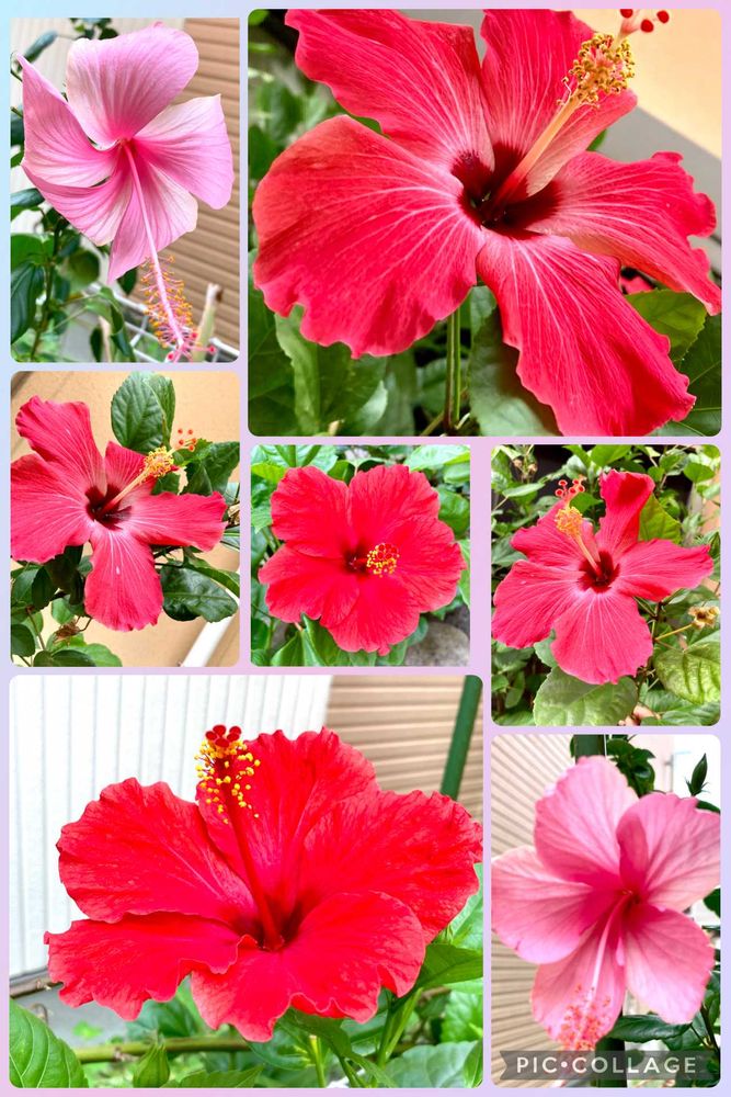 シンバさんのハイビスカスヘップバーンピンク,ハイビスカス サマーレッド,斑入りゴムの木 フィカス・ティネケの投稿画像