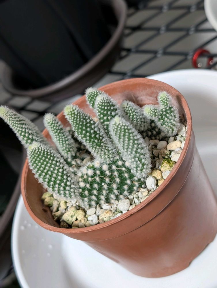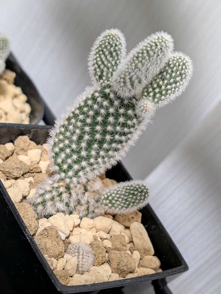 今日は、バニーカクタスです。最初は同じ鉢でみんな合体していたのですが、適当に育てていたらガンガン徒長してしまったので仕立て直して、ここまできました。シンプルでカワイイサボテンですね。この間、お店で見かけた子はエライ背が高くて支柱立てて周囲をすずらんテープで巻かれていました汗 今年の冬はシャコバサボテンを迎え入れたいと思っています☆