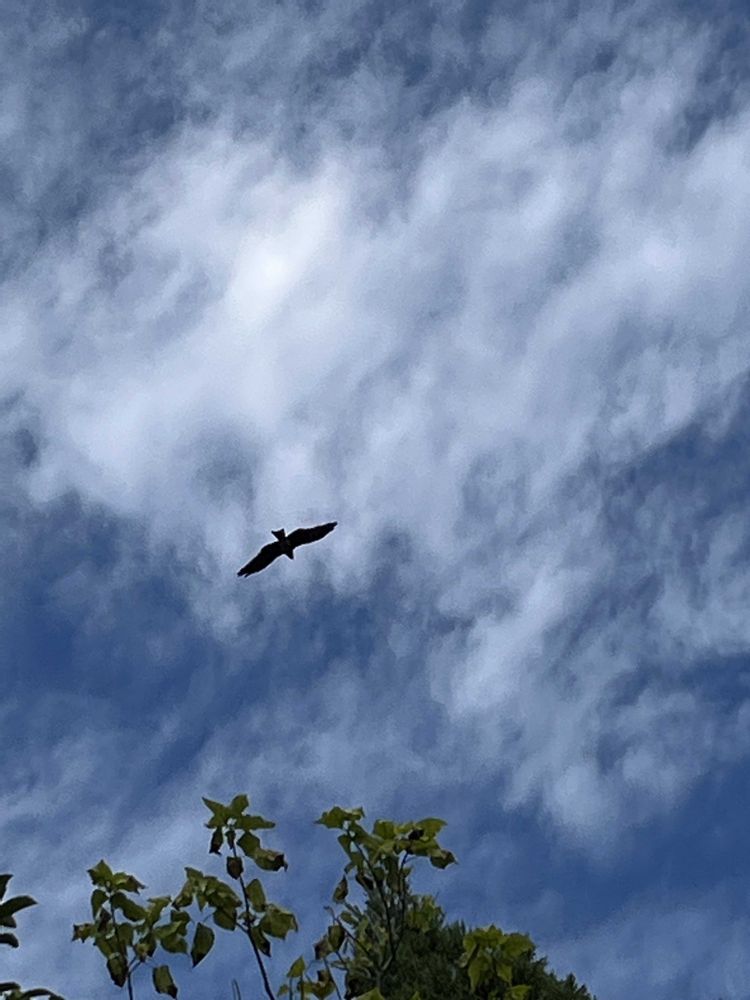 秋らしく高い空には🐦トンビがピーヒャララー🎶気持ち良さそうに翼を広げています🙄
