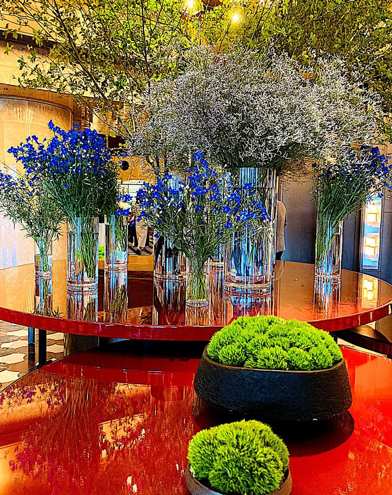 久しぶりに、娘とゆったり王朝の楊貴妃ランチデートを満喫した「ヒルトン東京」のロビー装花に、涼しげに飾ってありました🍽️🌟🍃🏢