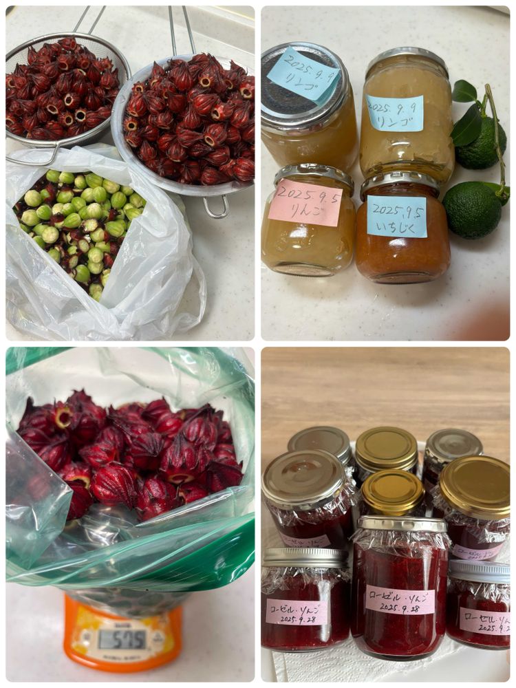 ローゼルだけだと酸っぱいからりんごジャムもらったので混ぜ混ぜ、美味しくできました😋