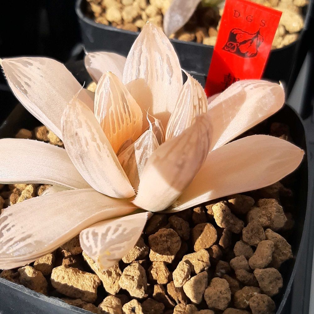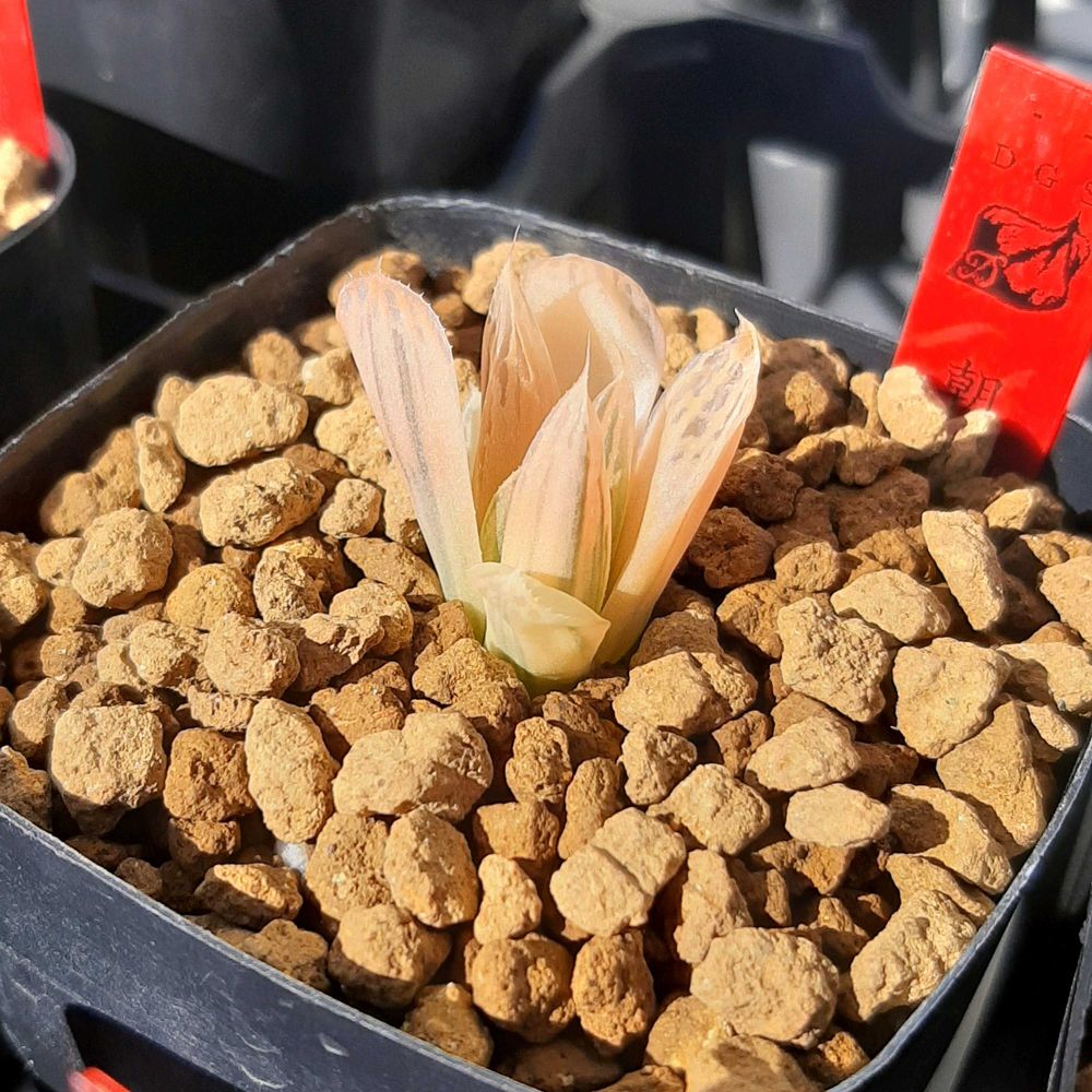 冬に起きて成長する多肉です 夏はたまごのような チューリップにも見える 温度感の薄い まるで作りモノのような姿で休みます