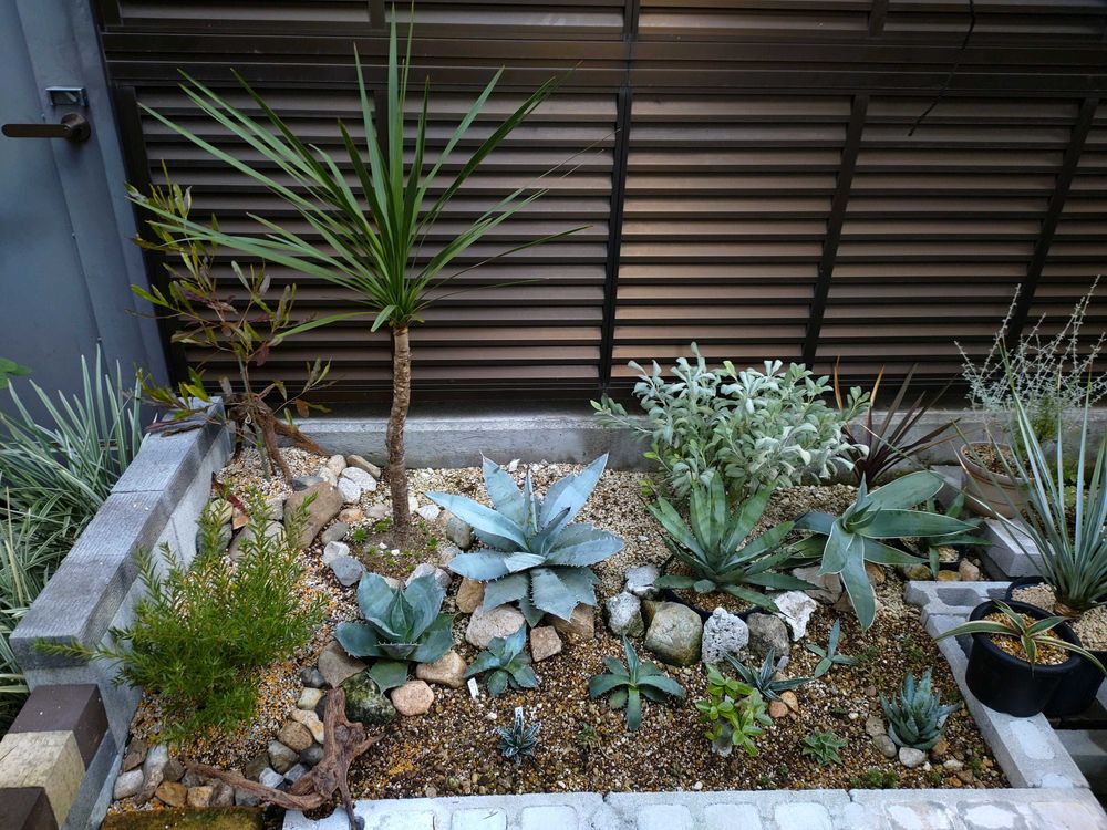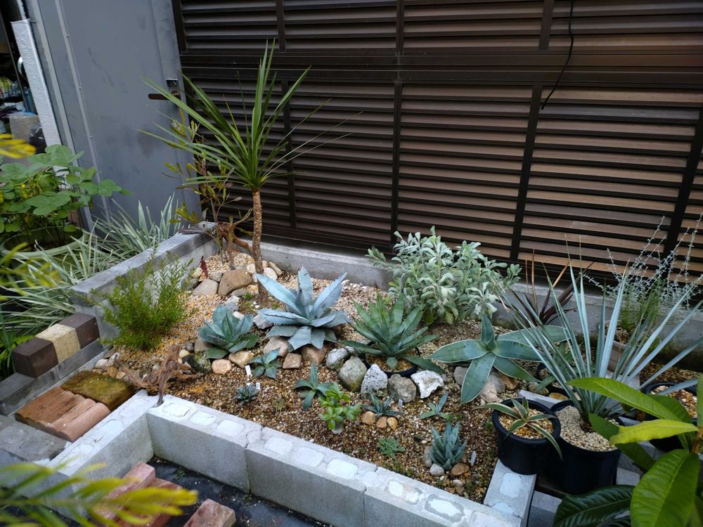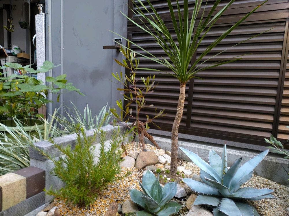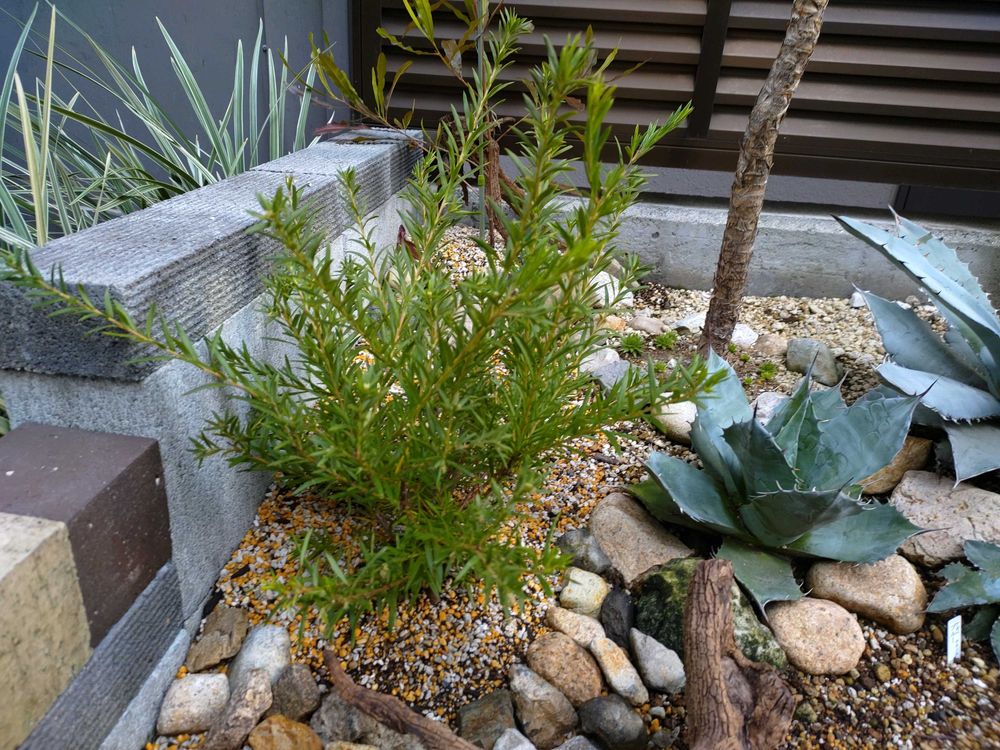 日曜日に、ドライガーデンのブロック花壇の空いてるスペースに、鉢管理していたドドナエア・プルプレアとグレビレア・ジョンエバンスを地植えしました😊
