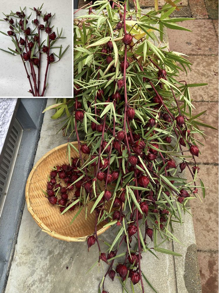 ①②収穫終わりました❣️前回のローゼルと一緒に😊