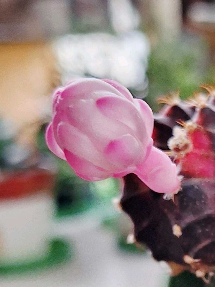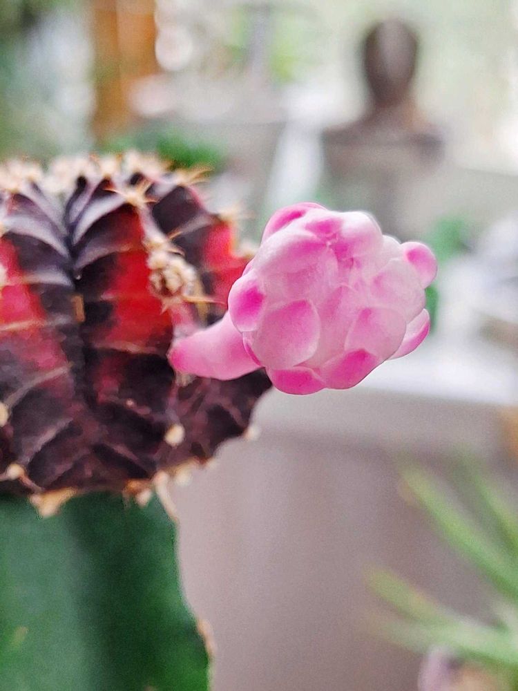 接ぎ木してある緋牡丹錦が、ピンクの蕾をつけています🎵\(^o^)/🎶