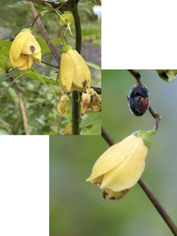 自然林に咲くキレンゲショウマは開花のタイミングがなかなか合わずやっと開いたお花にも日焼けの後で黒くなり真っ黒になった蕾もありました(❷)