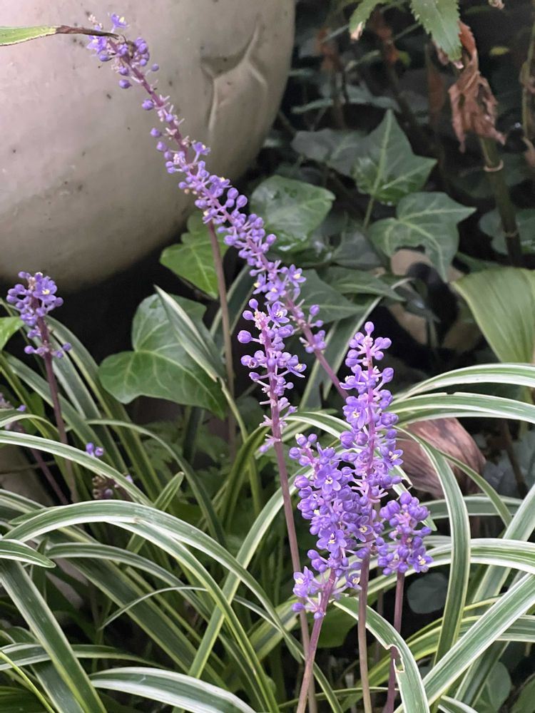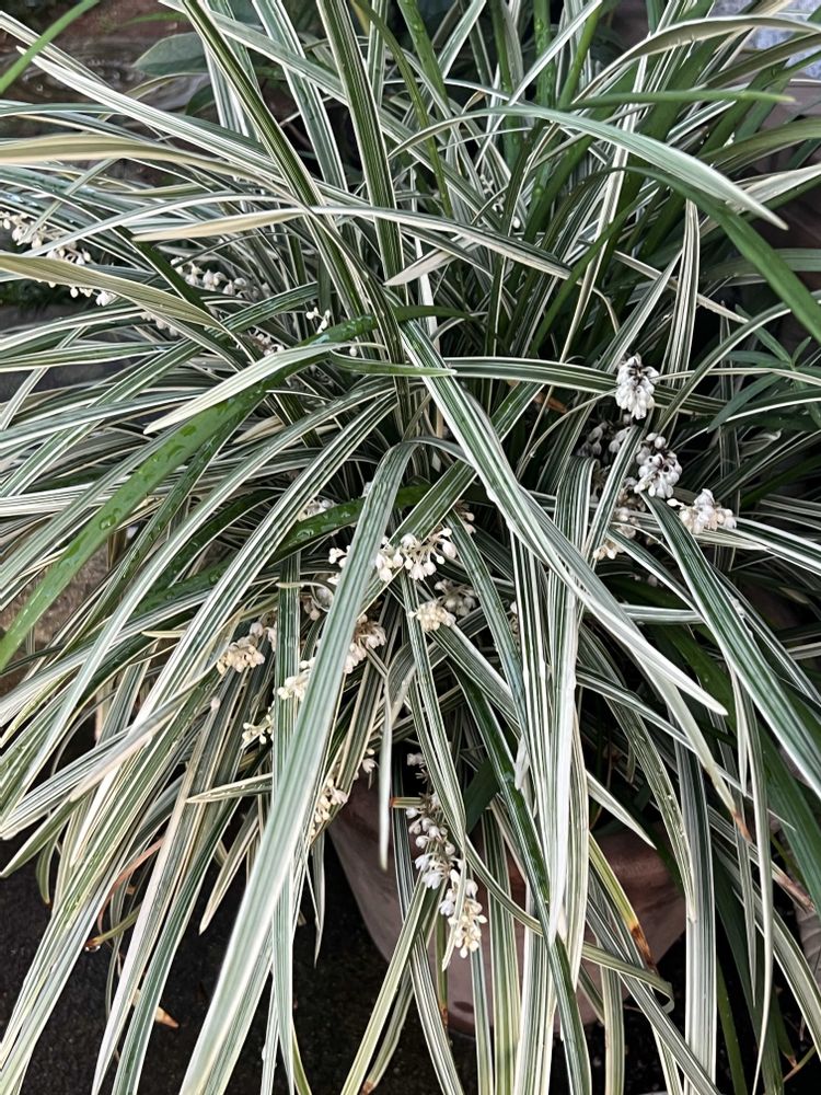 斑入りのヤブラン、藤色の花と白花もあるのね💜🤍