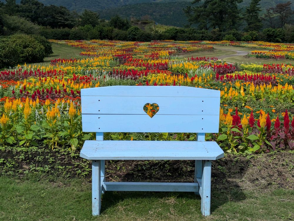 ケイトウの色と水色ベンチが合って 可愛かったです