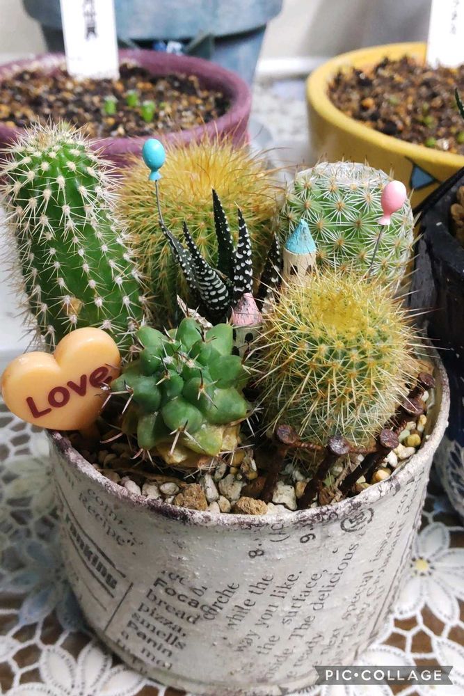 以前、ちまちま屋さんで購入したサボテンの寄せ植え。遮光が強すぎたのか?ちょっと伸び気味。真ん中の十二の巻きは、少し大きくなりました🤗💕