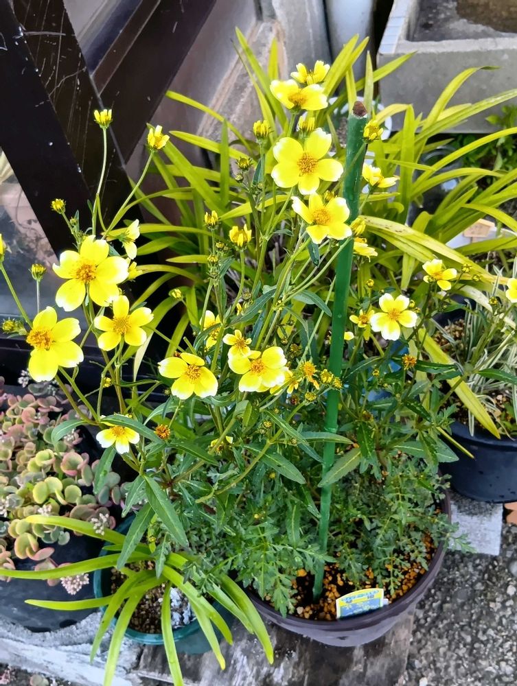 我が家のジニアも元気になりましたが、プランターなのでだらしなく広がっていたので縛ってあげました😅