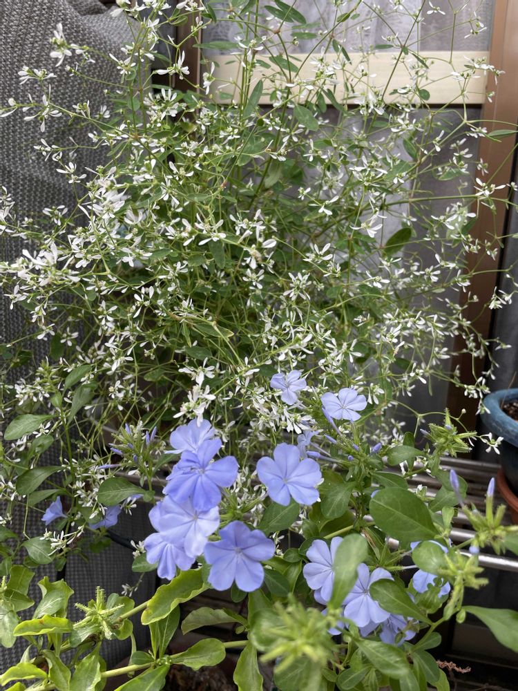 バルコニー/ベランダ,ユーフォルビア・ダイヤモンドフロスト,ルリマツリの投稿画像