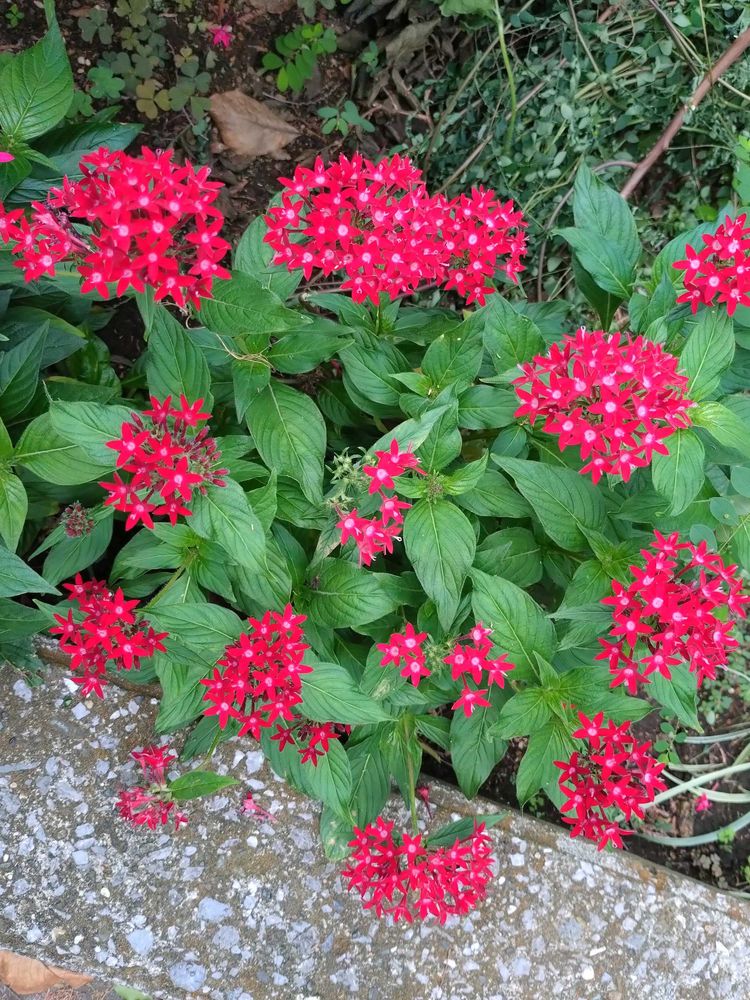 ❶❷駅前花壇のペンタス🌼曇り空ですが鮮やかに咲いていました