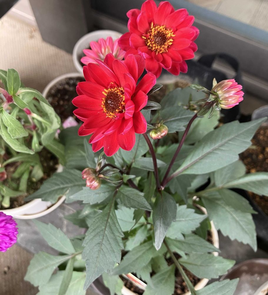 赤いお花の銅葉ぷちダリア ピュアリップ