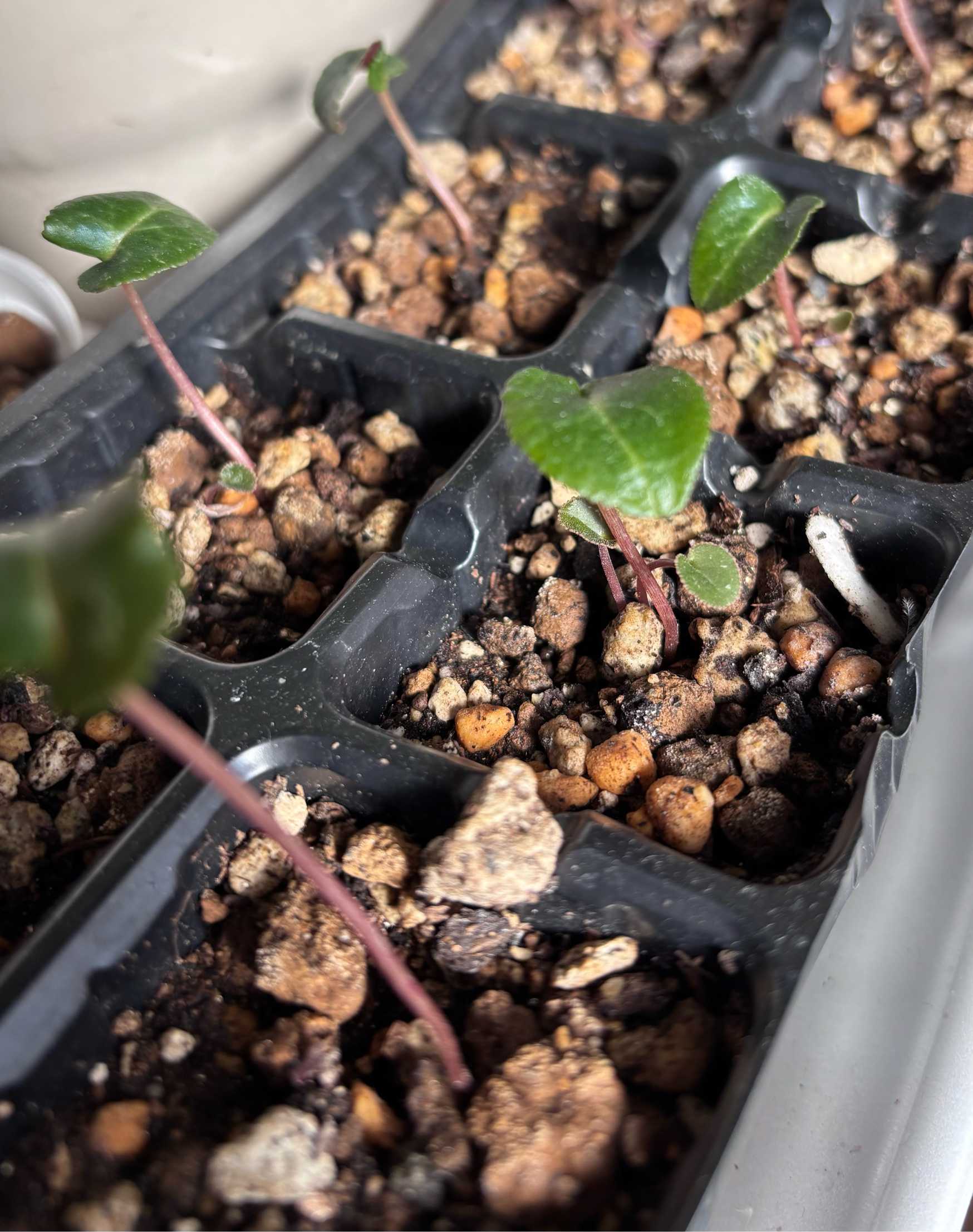 種が採れたので蒔いてみたら結構芽が出たので大きく育てて来年には花を咲かせたい