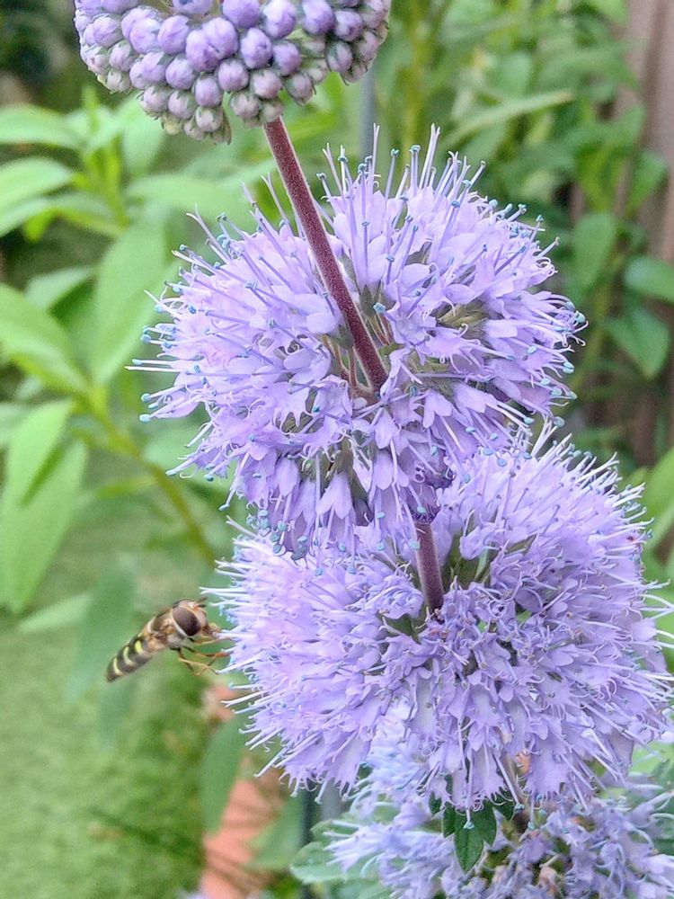 ダンギクの蜜を求めてハナアブが飛んできました。