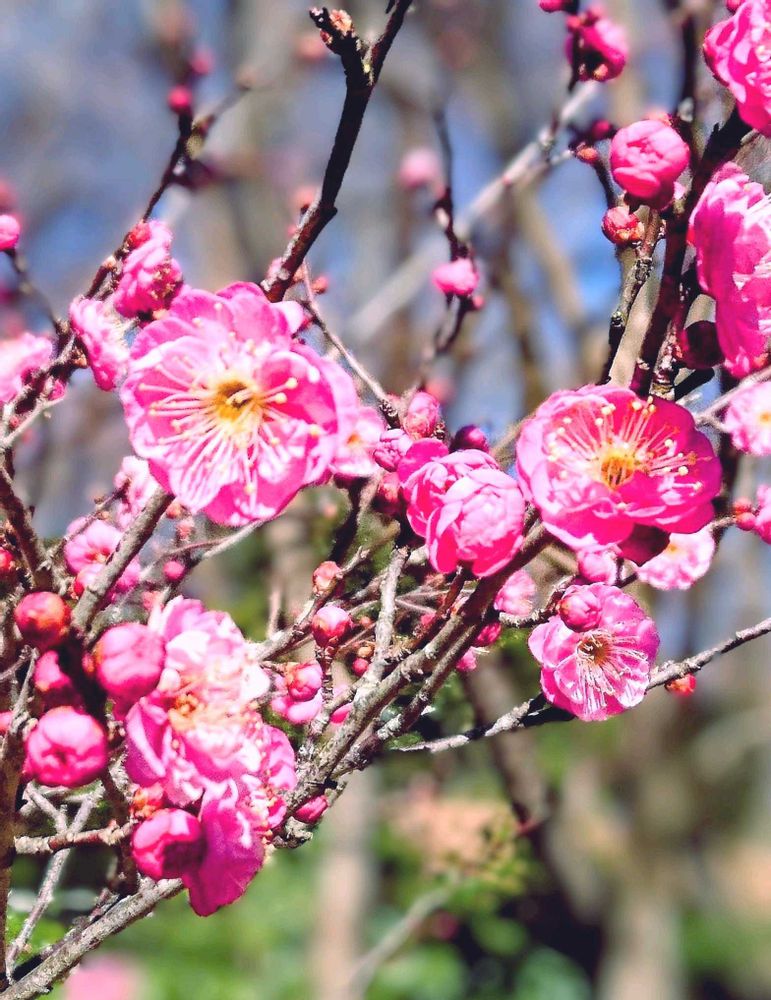 太陽の光✴️に照されて紅梅のお花がとても可愛らしく綺麗に咲いていますね😍💖