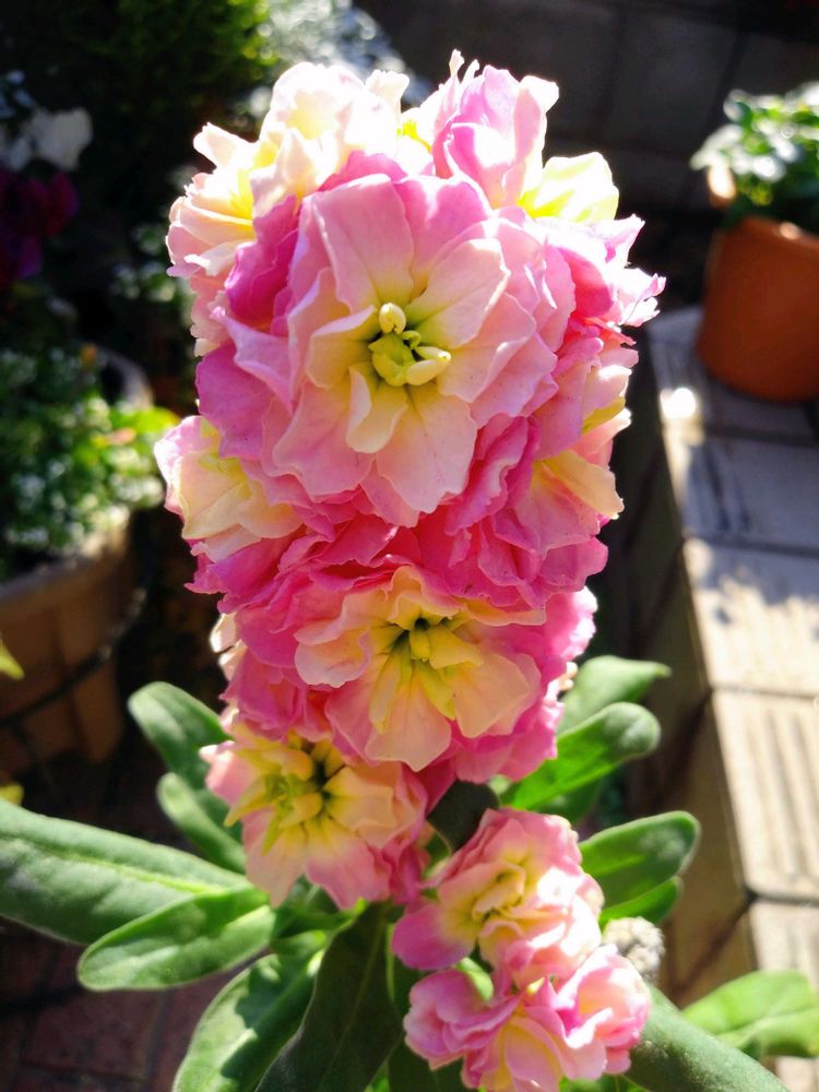 太陽の光✴️に照されて、ストックのお花がとても綺麗に咲いていますね😍💖