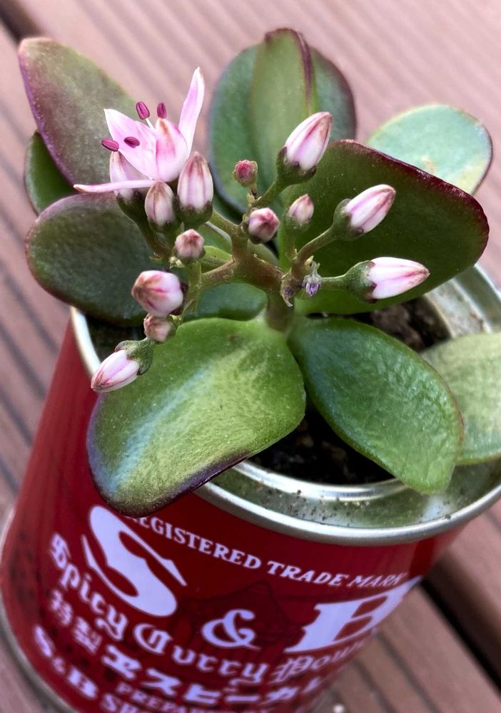 先日、親株の花が咲きましたが、今日はSB缶に刺しておいた挿し木の花が咲きました♪
