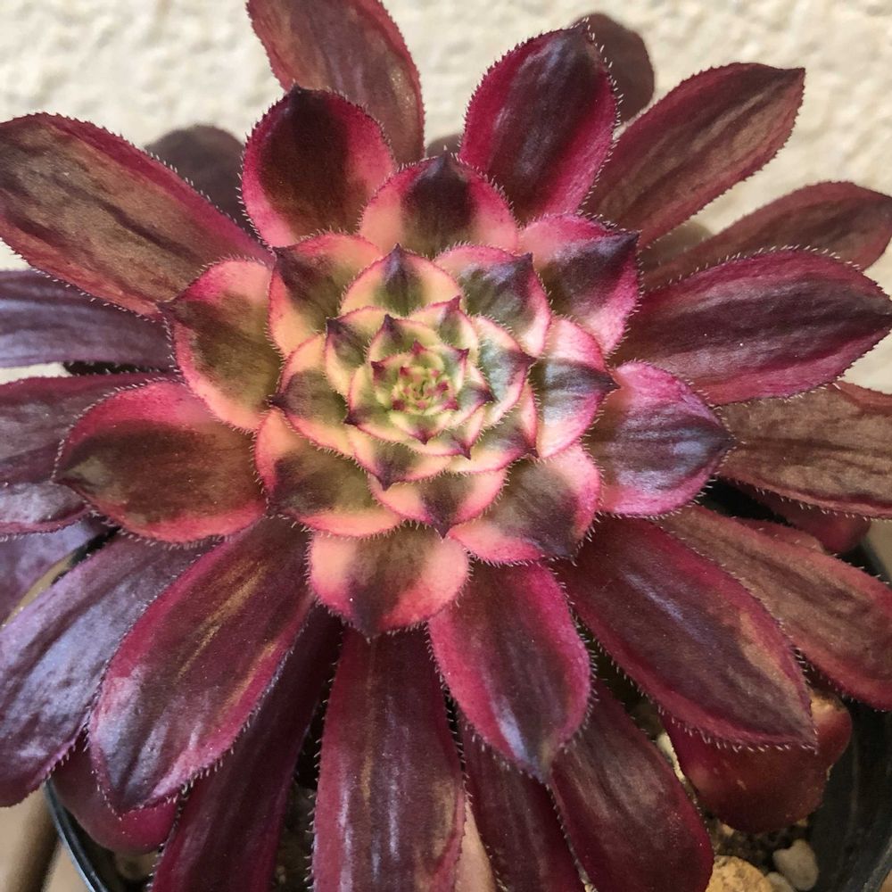 アエオニウム マルディグラ🪴おんなじ子の↑今の姿↓1カ月前の姿