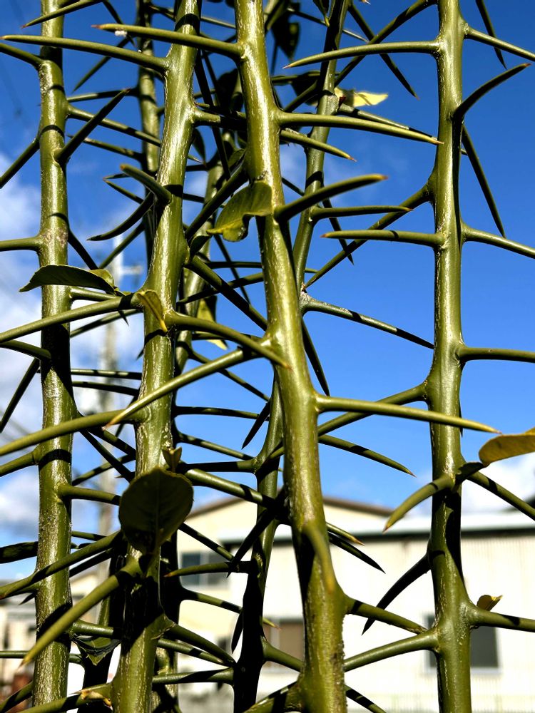 カラタチだと思うんですが、トゲが鋭くて、見ていても怖いですね😱