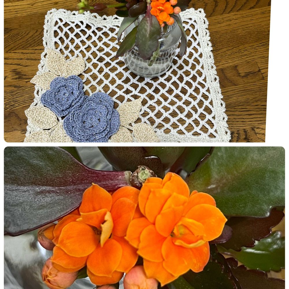 ②昨日のカランコエをアップで。レースはクッキーMさまのレースです。