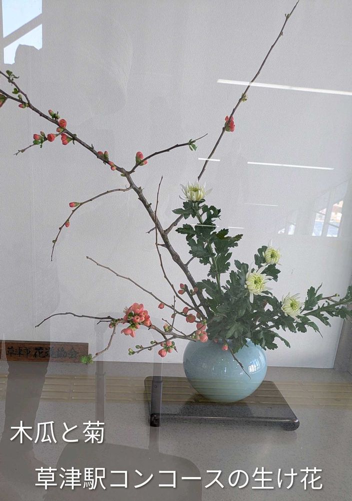 駅の隅っこにある生け花コーナーに何時も季節を感じるお花が生けてあります。