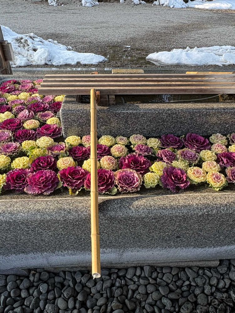 5枚め:2.5: 手水舎に葉牡丹が飾ってありました😳