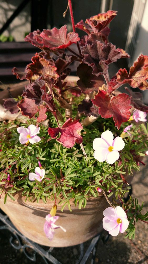 ①ゼラニウムの鉢に共生するオキザリス🌼
