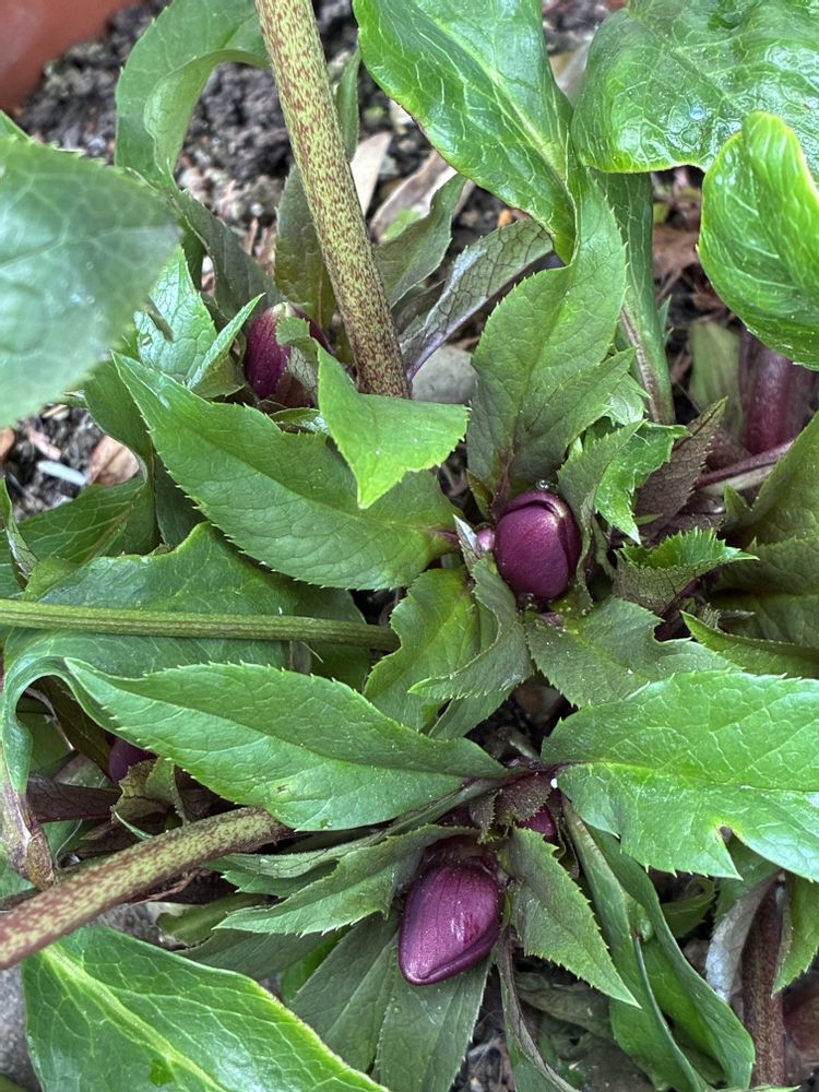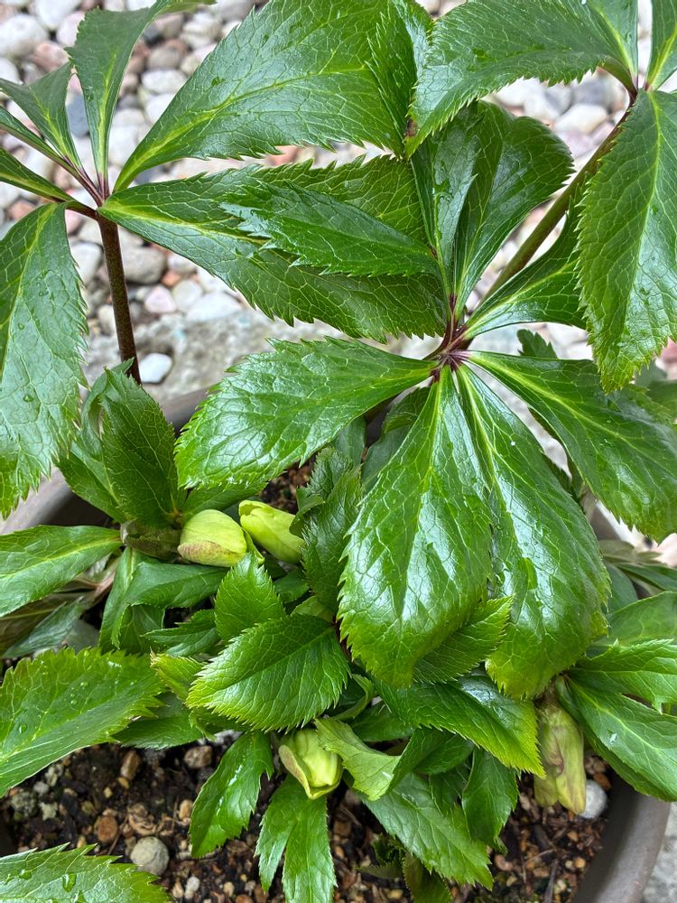 🌿ツヤツヤ葉っぱ🌿のクリスマスローズさん💚のつぼみ