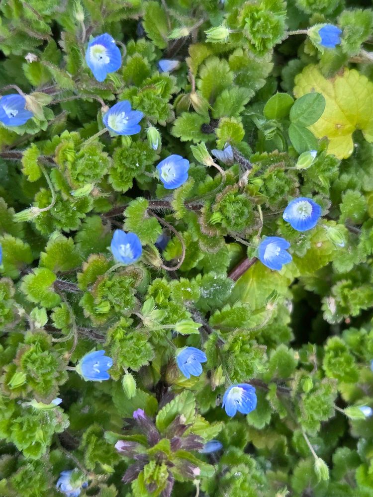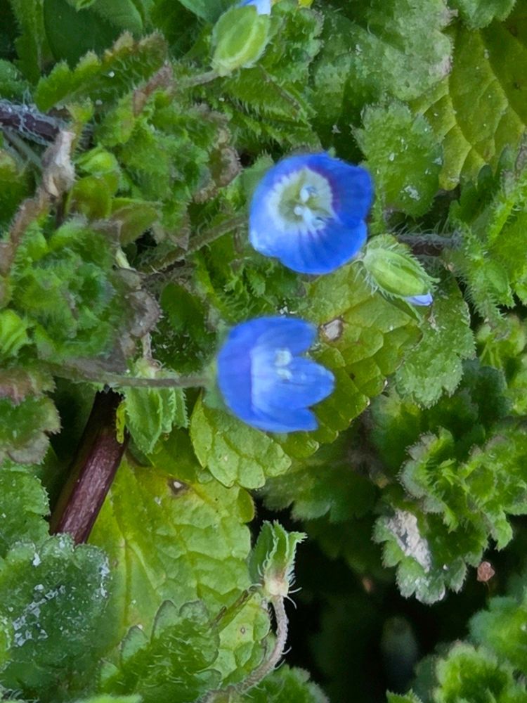 昼は雪が溶けてオオイヌノフグリの花を見つけました💙