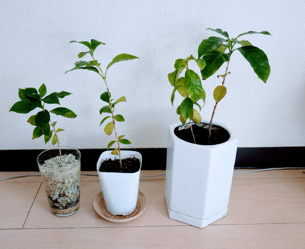 百均で4本300円だったコーヒーの木。いつかコーヒー豆を取りたい。
