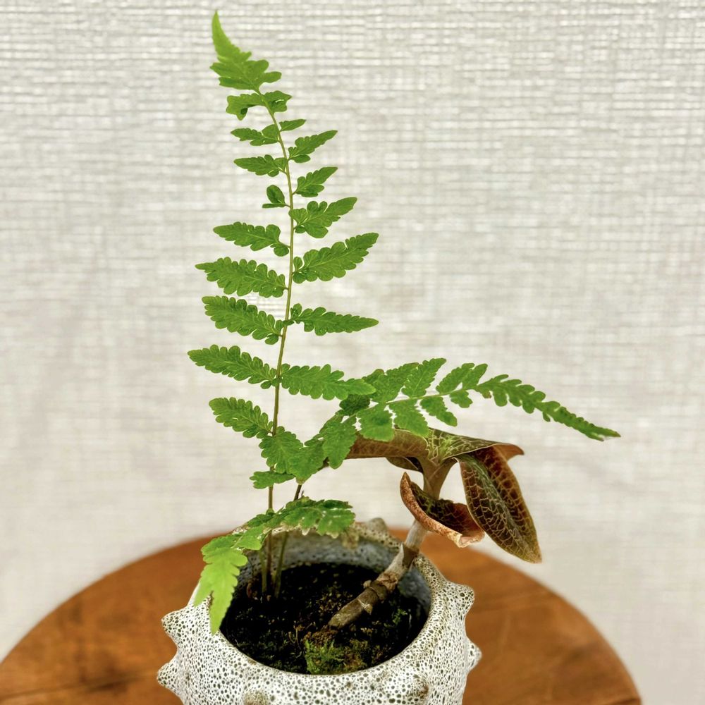 侵入者(勝手に生えてきた野良シダ)に居城を略奪されそうなドッシニア🌿💦