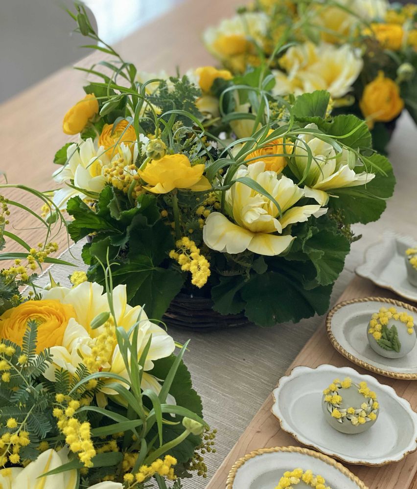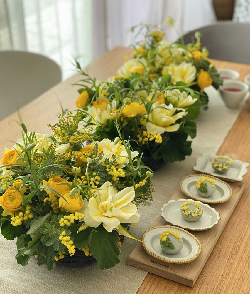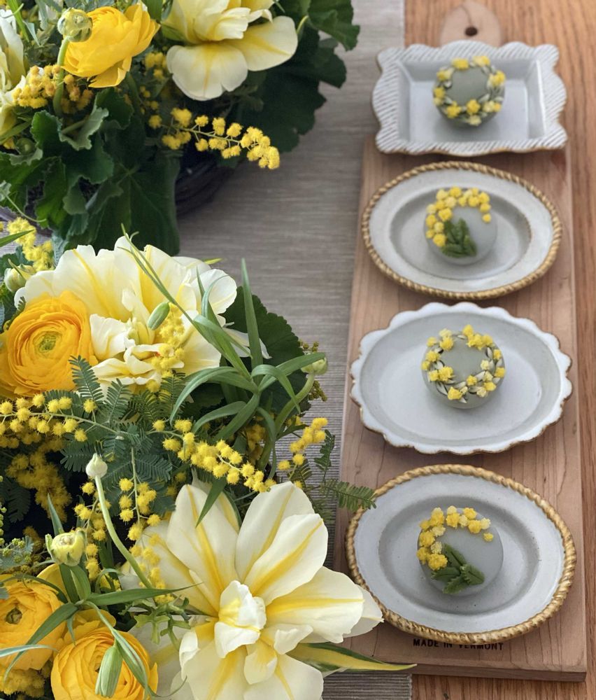 ミモザが入るだけでアレンジメントも練り切りも一気に春色💛可愛いですよね。