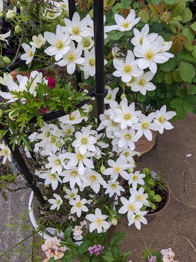 春一番に白い花を満開にさせてくれるクレマチスフォステリー系、近所の方にも通りかかった方にも好評です💘