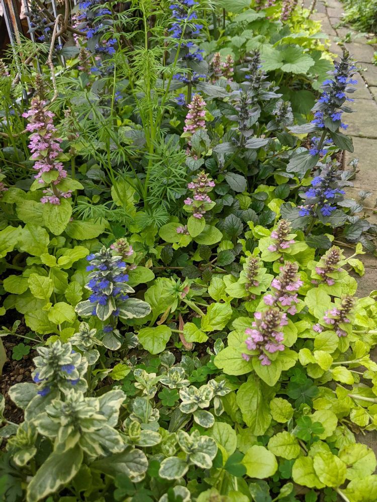 ④地植えのアジュガたちも続々と開花