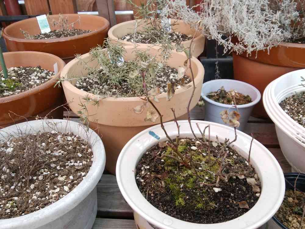 今日は気温が10度位になるので、直射日光が当たらないところで外に慣らす、休眠中のハーブ類