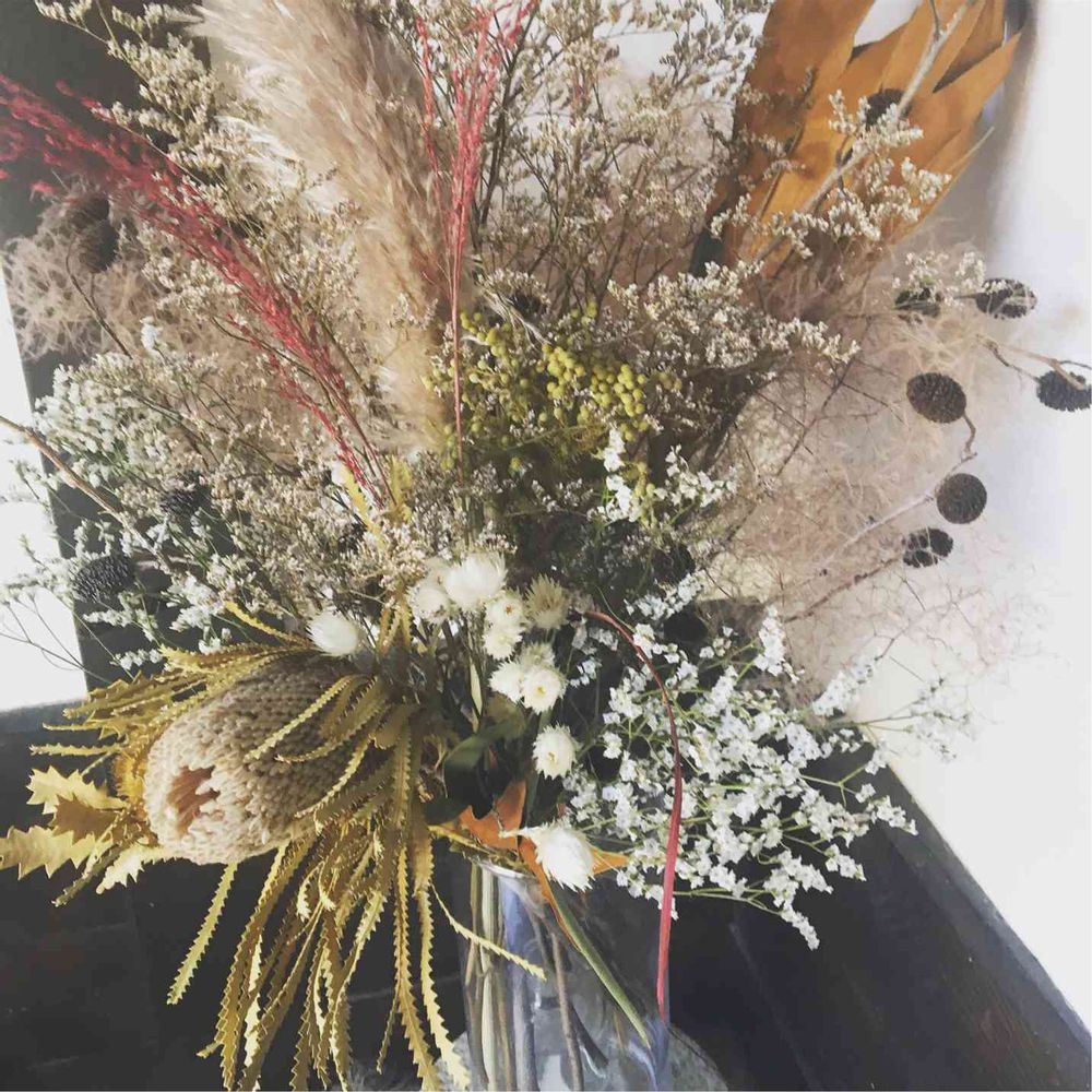 少しずつ、ドライフラワーを作ってブーケにしました💐