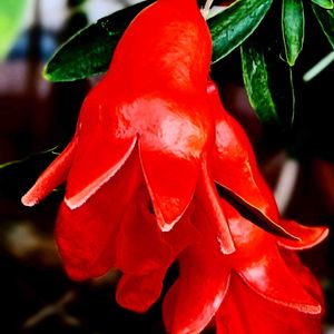 ミニザクロの花 ミニザクロの花が、まだ、咲いています。 一番花は、既に、実を付け、今にも、弾けんばかりに肥大しています。