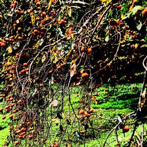 富有柿の豊作 家庭菜園脇の富有柿の実がたわわに実っています。