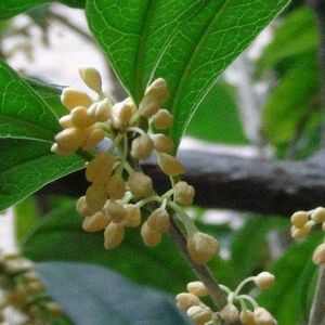 今年の金木犀 今年の金木犀です。 花色が白に近い色で咲いて居ます。 銀木犀と間違われそうです。 匂いも控えめです。