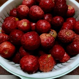 ヤマボウシジャム 散歩道の某邸の住人からヤマボウシの実をいただきました。 一念発起し、ヤマボウシジャムに挑戦しました。 Googleで検索してジャムのレシピを、、、 最初のうちは簡単だと思ってましたが、大変でした。 小さい実の皮剥き、種取り、煮詰めの工程ですが、皮剥きと種取りが、、、 何とか出来上がりましたが、来年からは挑戦しません。