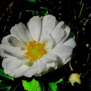 白花秋明菊 白花秋明菊が、ヤット一輪咲きました。 よく見ると、花弁の数が多い八重咲きでした。