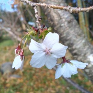 今日のお花「フユザクラ」 冬の桜はジュウガツザクラやコブクザクラをよく見ます ここの桜は春のようにピンクの桜が満開になります 種類はわかりませんがピンクや白っぽい桜が何本か12月の初めに咲きます 今年も「今なら見られる!」と見に行きましたが、今年は遅いのか普通の桜のように葉っぱの紅葉が見られました これは去年12月5日に見たものです😆